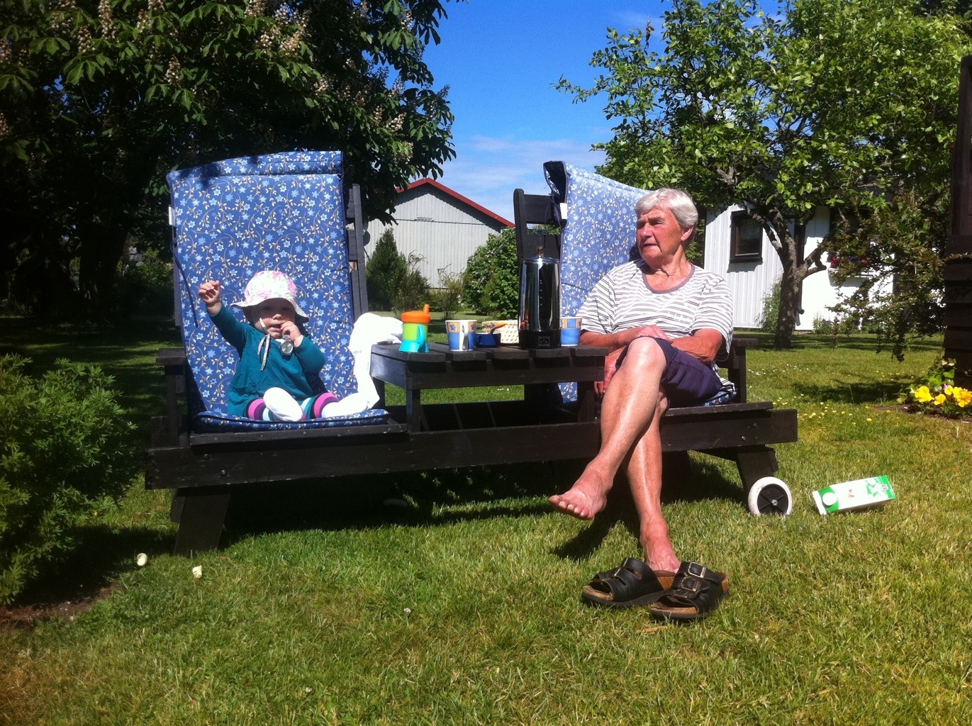 Gammelfarmor och Ebba tar en kopp kaffe i trädgården. Ebba dricker inte så mycket, hon vinkar mest. Inläggsförfattare:lina Inlägget publicerat:juni 12, 2012, 15:24 Inläggskategori:Uncategorized Kommentarer på inlägget:0 kommentarer Fortsätt läsaGammelfarmor och Ebba tar en kopp kaffe i trädgården. Ebba dricker inte så mycket, hon vinkar mest.