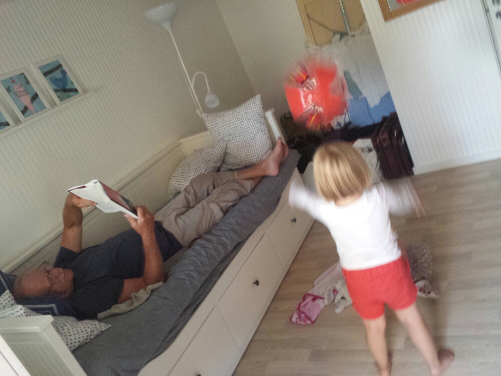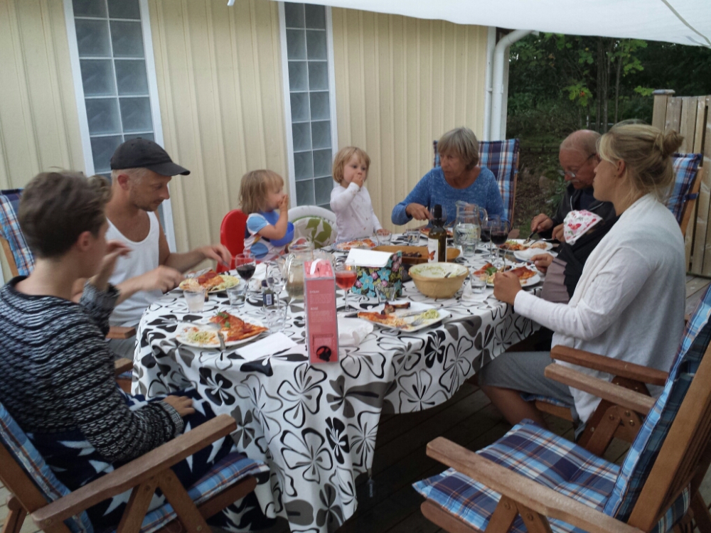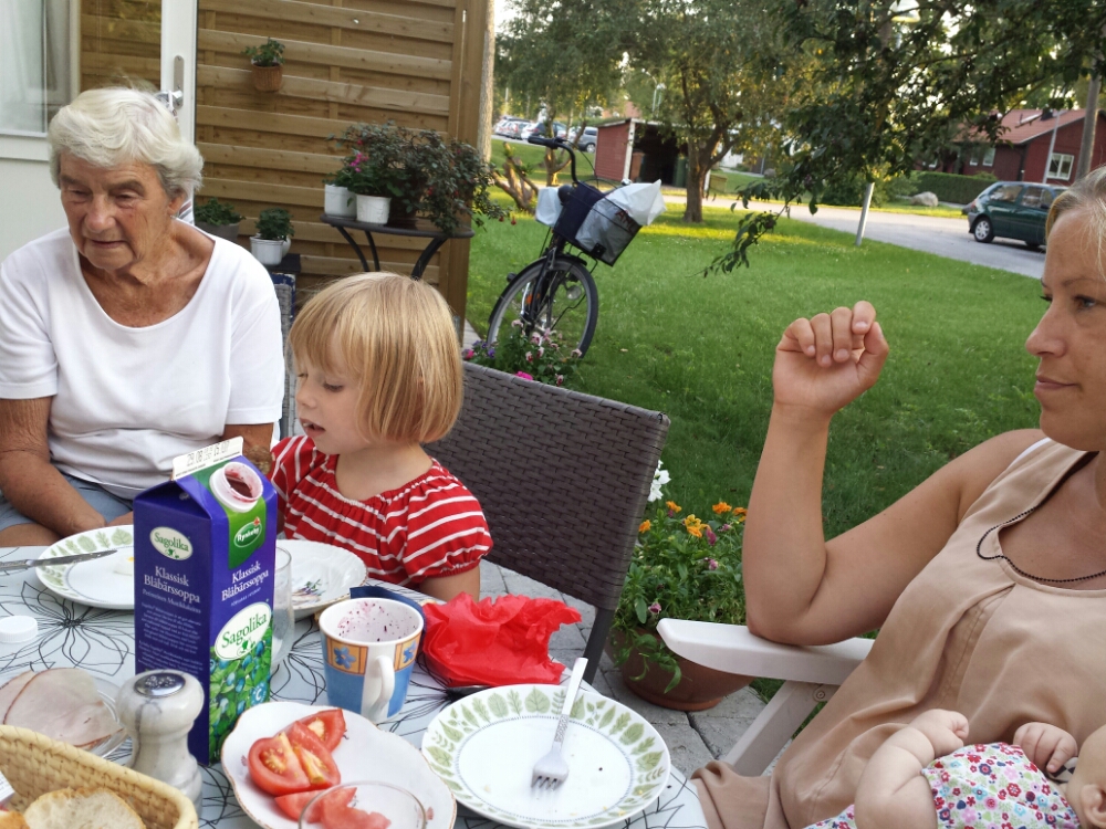 Idag åker Lotten, Johan, Karin, mamma, pappa och Liv från sommarhuset i Espevik för att njuta av olika festligheter. Kvar är farmor, farfar och Ebba och har det gôtt.