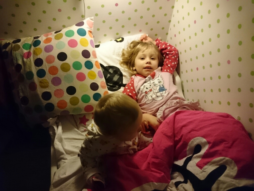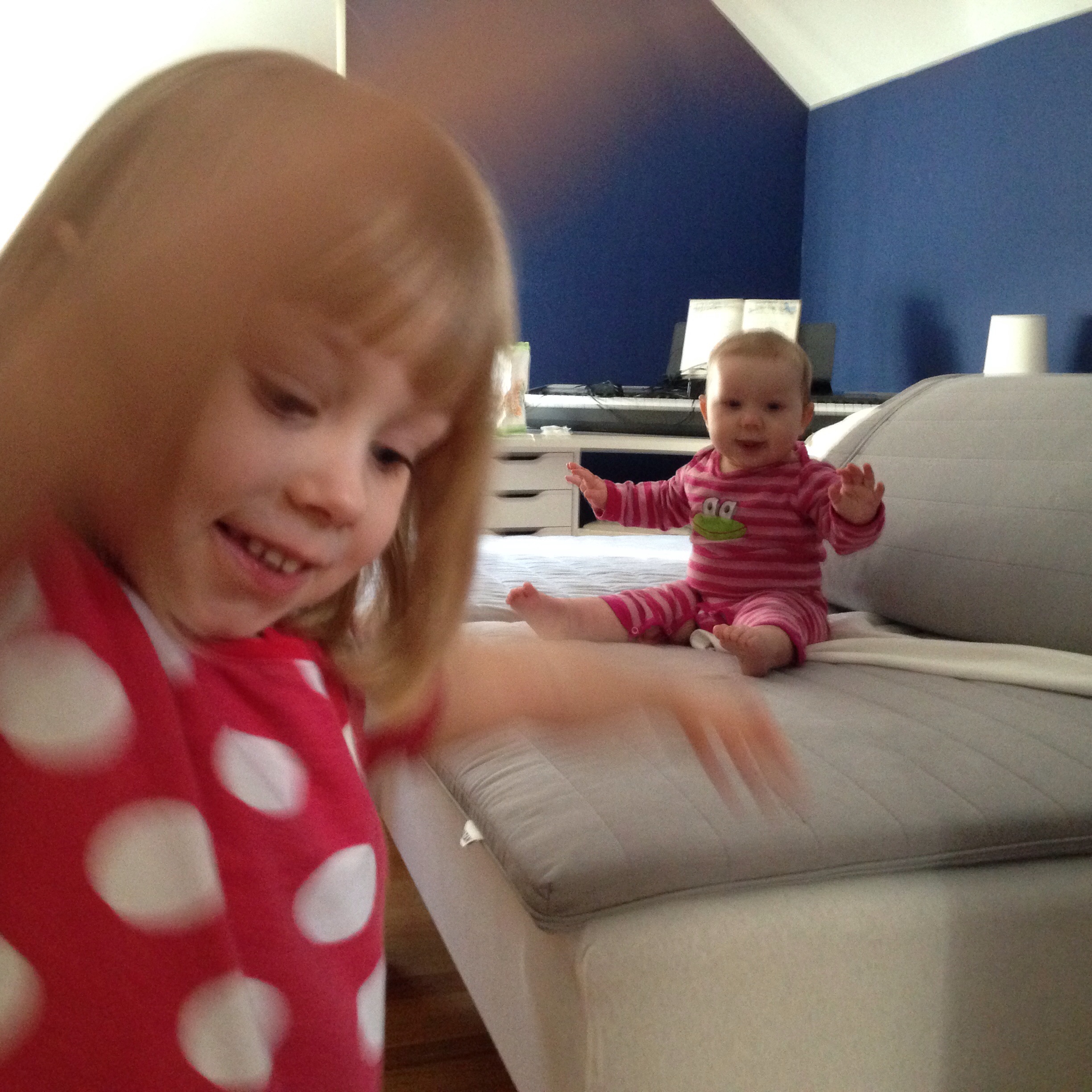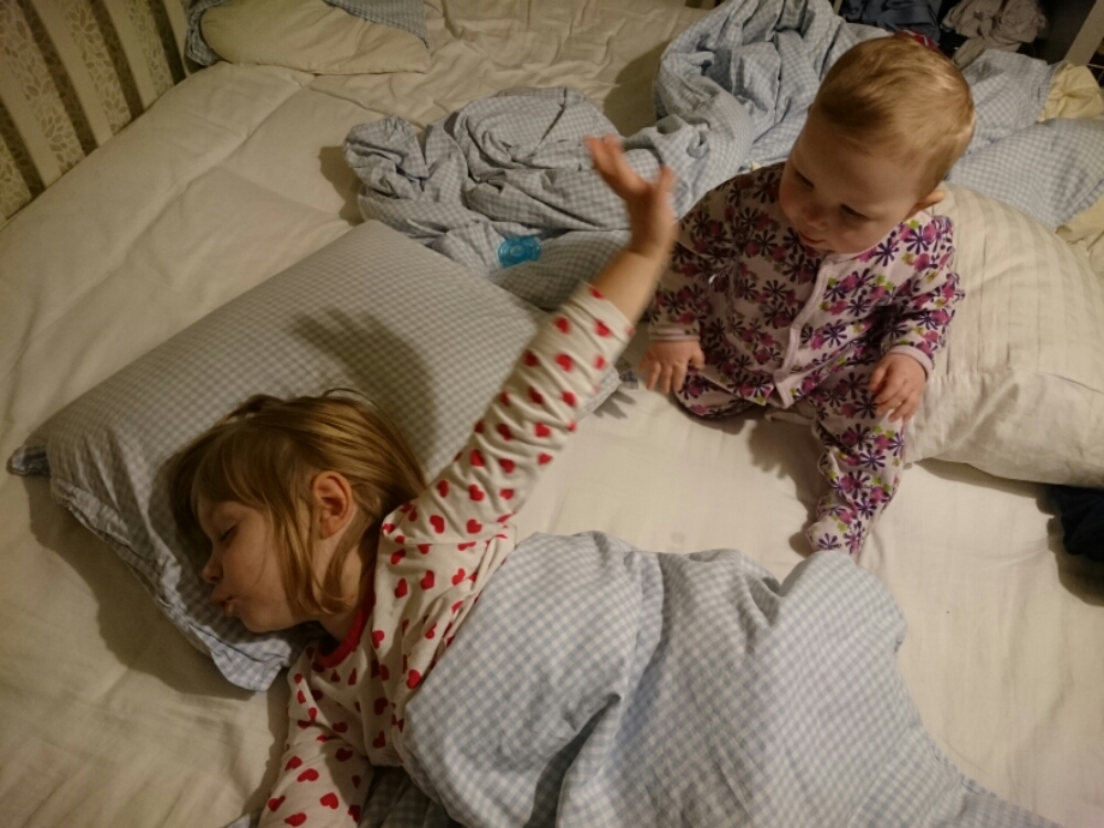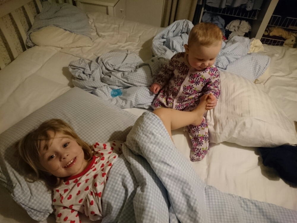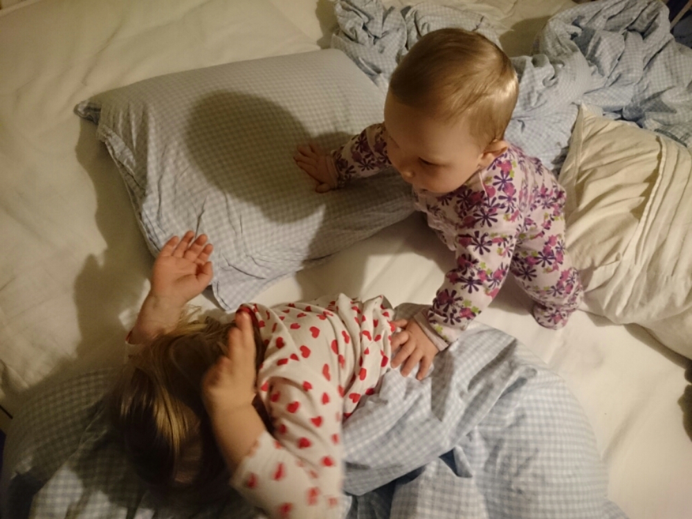 PS. Idag tog Liv tag i mammans ben, när mamman satt på golvet, satte sig på huk, släppte benet – och reste sig upp (alltså utan att hålla i sig)! Sedan stod hon så i några sekunder till mamman började jubla och bröt koncentrationen. Ds.