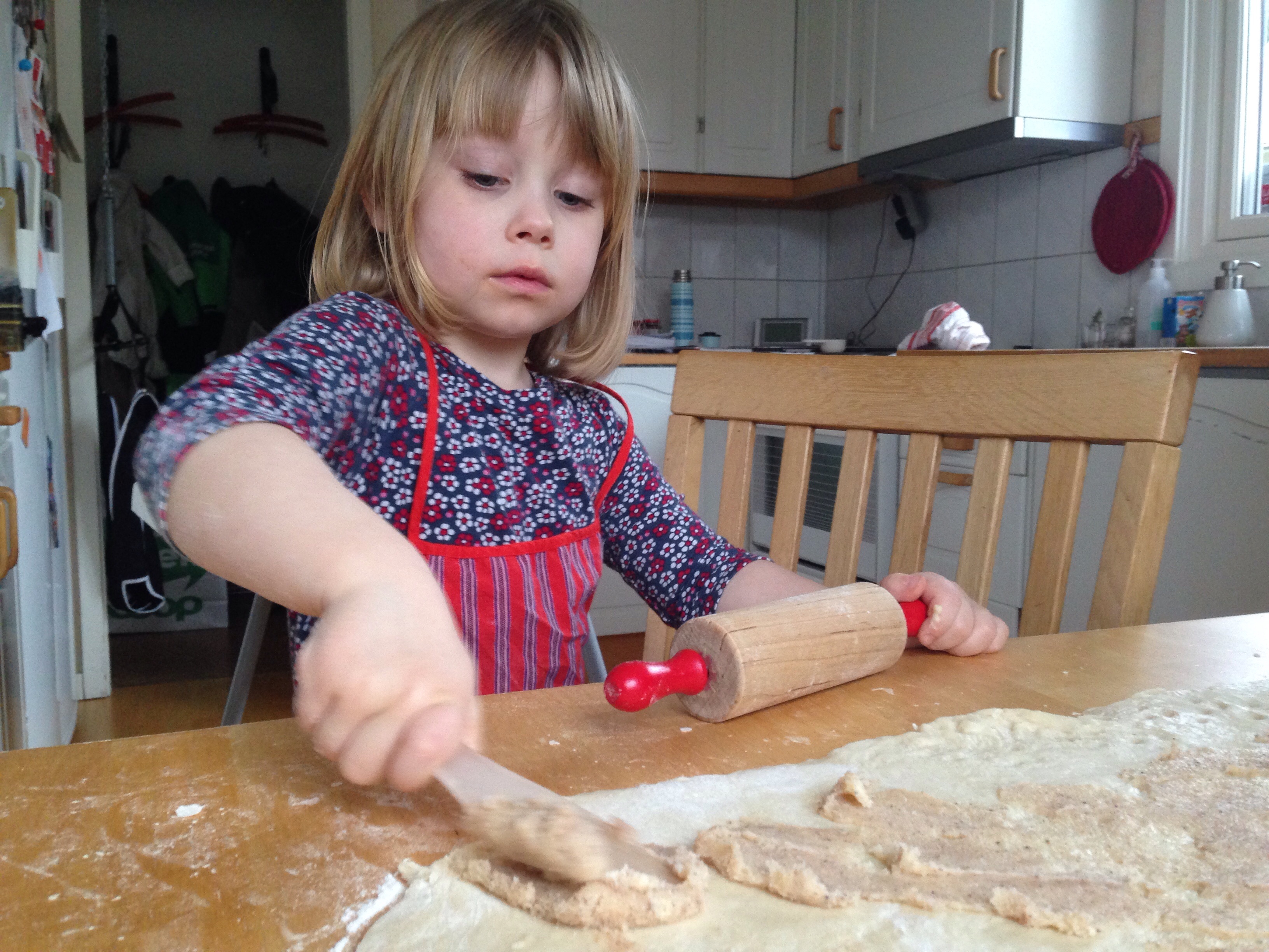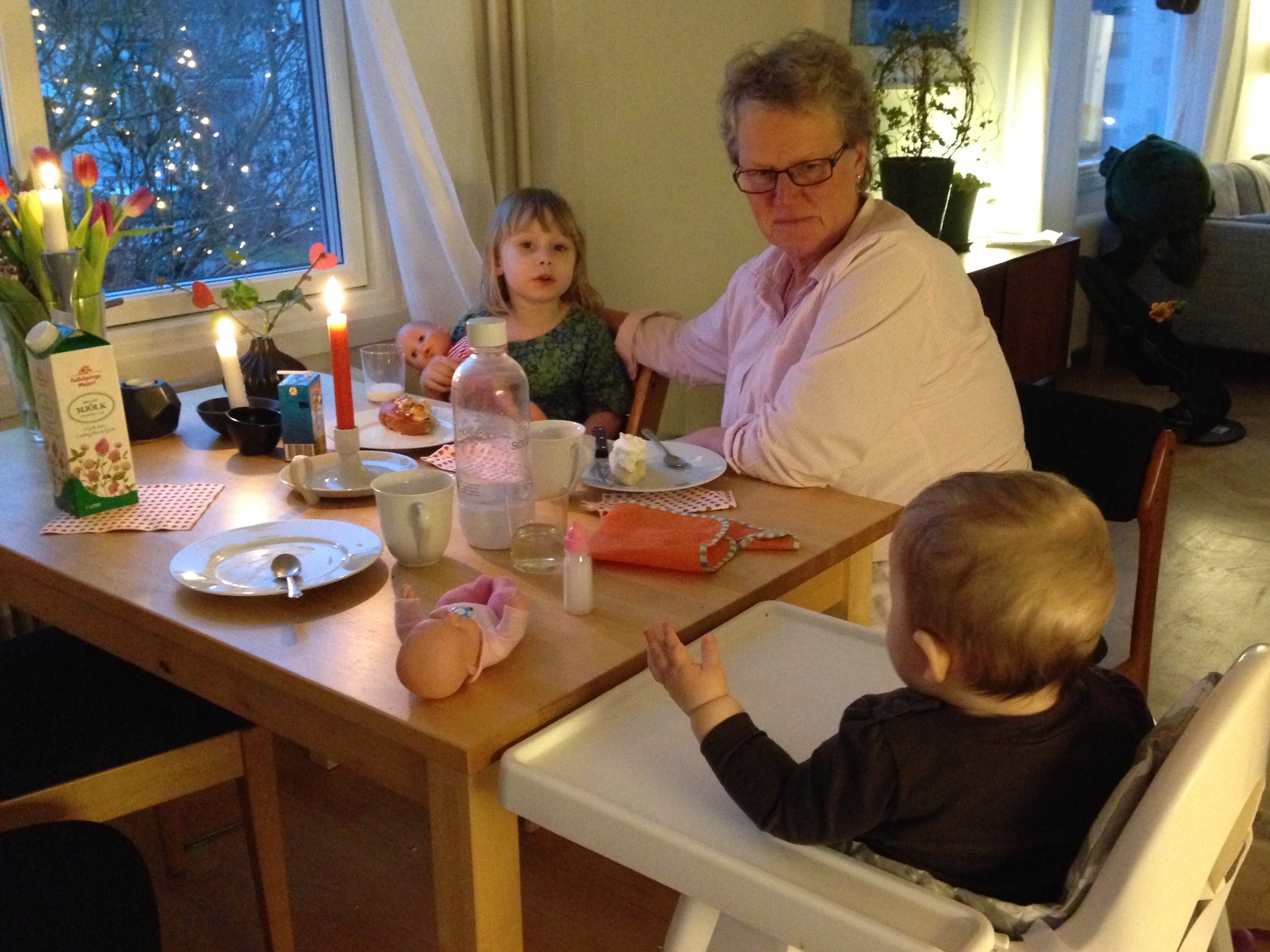 ”Nu ska vi dansa. Vänta lite, jag ska bara skriva det! Heter du mamm-a Li-na Pesson?”, säger hon medan hon skriver på ett papper. ”Är du 50 eller 100 (år)?”