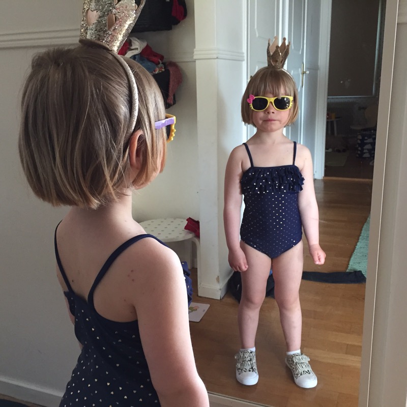 Ebba spexar i kvällssolens sken