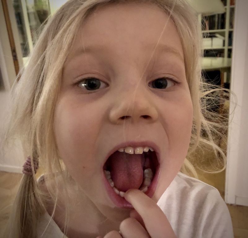 Här ser man den lösa tanden nere.