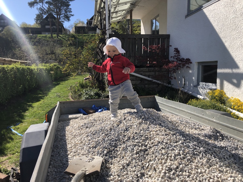 Max är ganska missnöjd över att någon strösslat lerjord på gräsmattan. Den är så jobbig att kratta upp. Det är faktiskt lättare att äta upp den, men om han ska vara helt ärlig smakar den sådär.