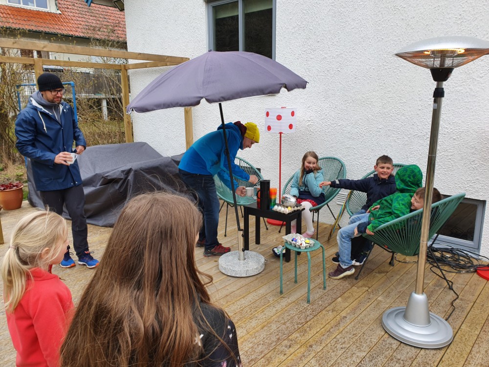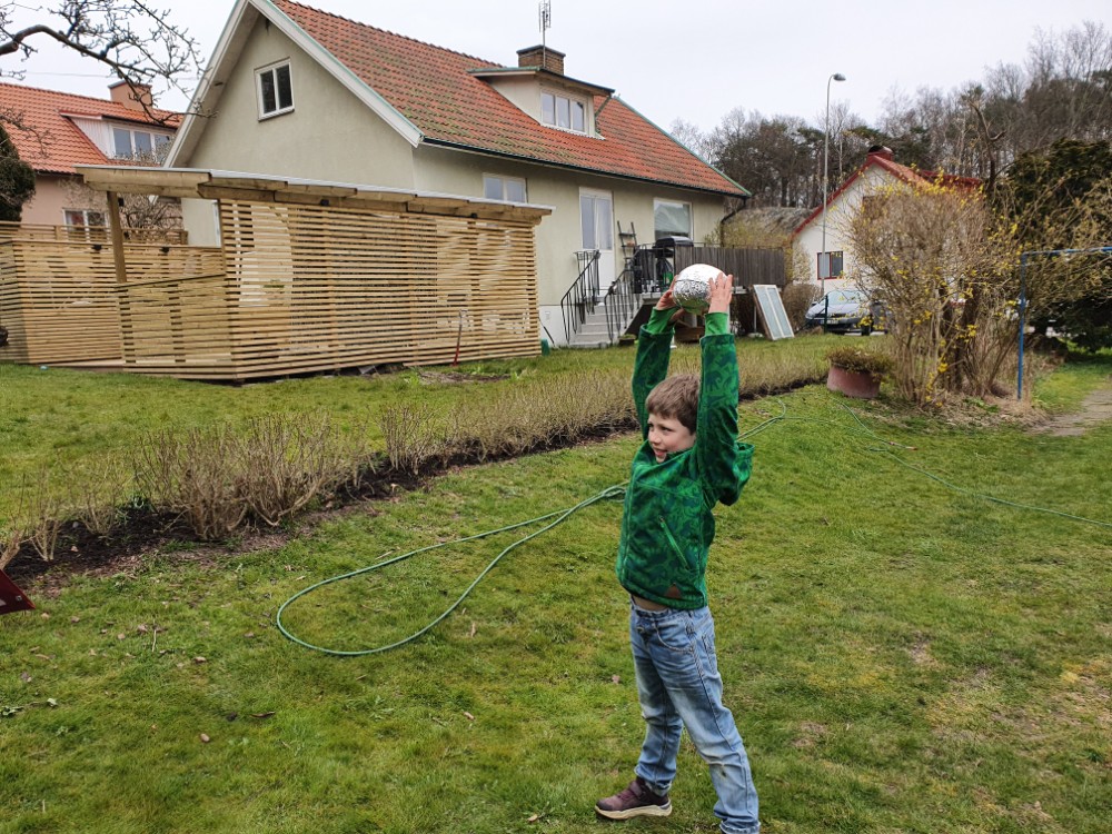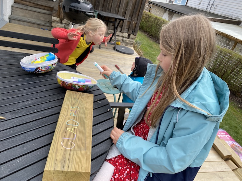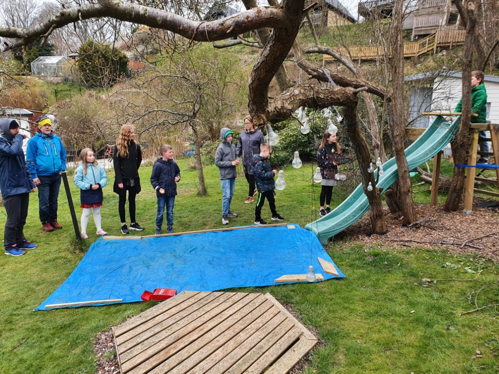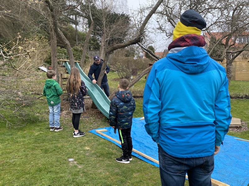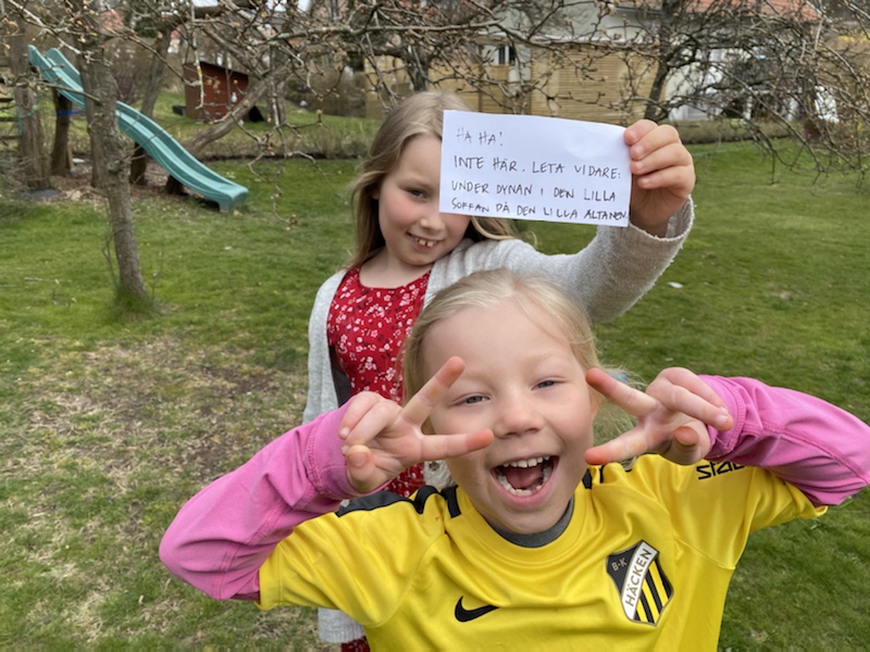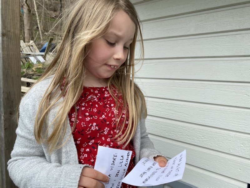 Max hamnar en aning efter hela tiden. När han väl kommit till den lilla altanen är syrrorna redan i odlingslådorna och letar efter nästa ledtråd.